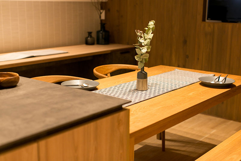 スタッフは退席させていただきますので、 ご家族で「Honey B のお食事」と「musubiの灯りの空間」をお楽しみください。MUSUBIモデルハウスで静かな空間をゆっくり味わってください。
